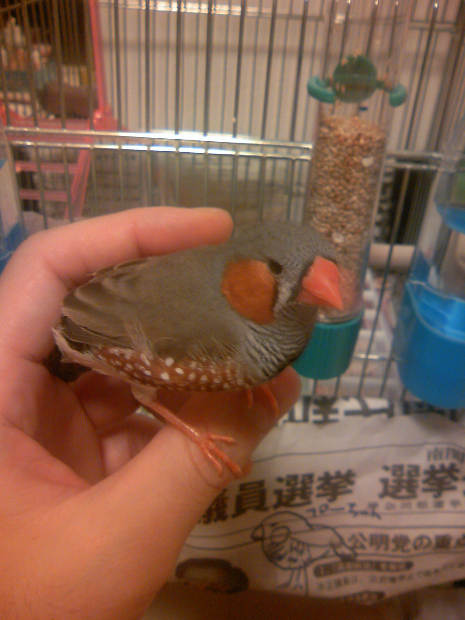 今日で飼って3日目。まだまだキンカ鳥は僕になついてくれません。